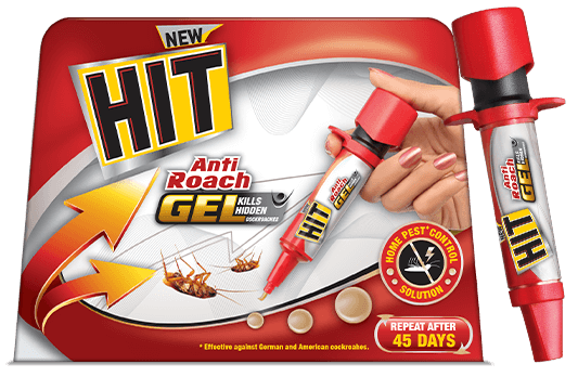 HIT Anti-Roach Gel is a cockroach nest killer. The gel has special ingredients which attract cockroaches. On consumption of the gel, cockroaches go back to their nest and die. Other cockroach killing paste that come in contact with those dead cockroaches also die, resulting in elimination of the cockroach nest.